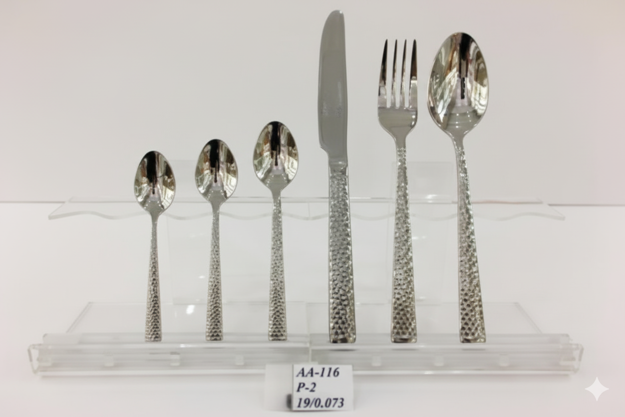 Each utensil in this grand set features a distinctive, elegantly textured handle. This modern design not only offers a comfortable and secure grip but also adds a sophisticated visual appeal that complements any table setting, from everyday family dinners to lavish entertaining.