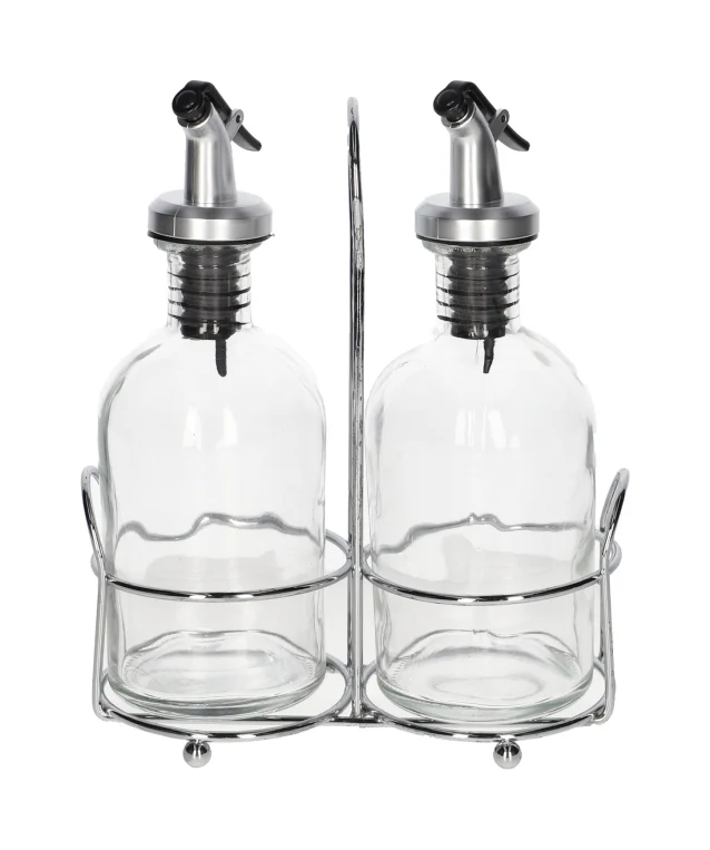 Ideal for storing liquid condiments such as oil, olive oils, vinegars, sauces and dressings. Comes with a stand holder.